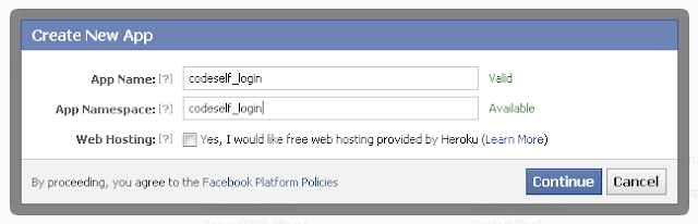 โดยเข้าไปที่ https://www.facebook.com/developersกรอก App Name และ NamesSpace(ตามที่คุณต้องการ จากภาพเป็นแค่ตัวอย่าง)กรอกลิ้งเว็บไซด์ของคุณ(Facebook จะใช้ URL นี้ในการตรวจสอบว่าเราใช้ App นี้กับเว็บไซต์เราจริงหรือไม่)